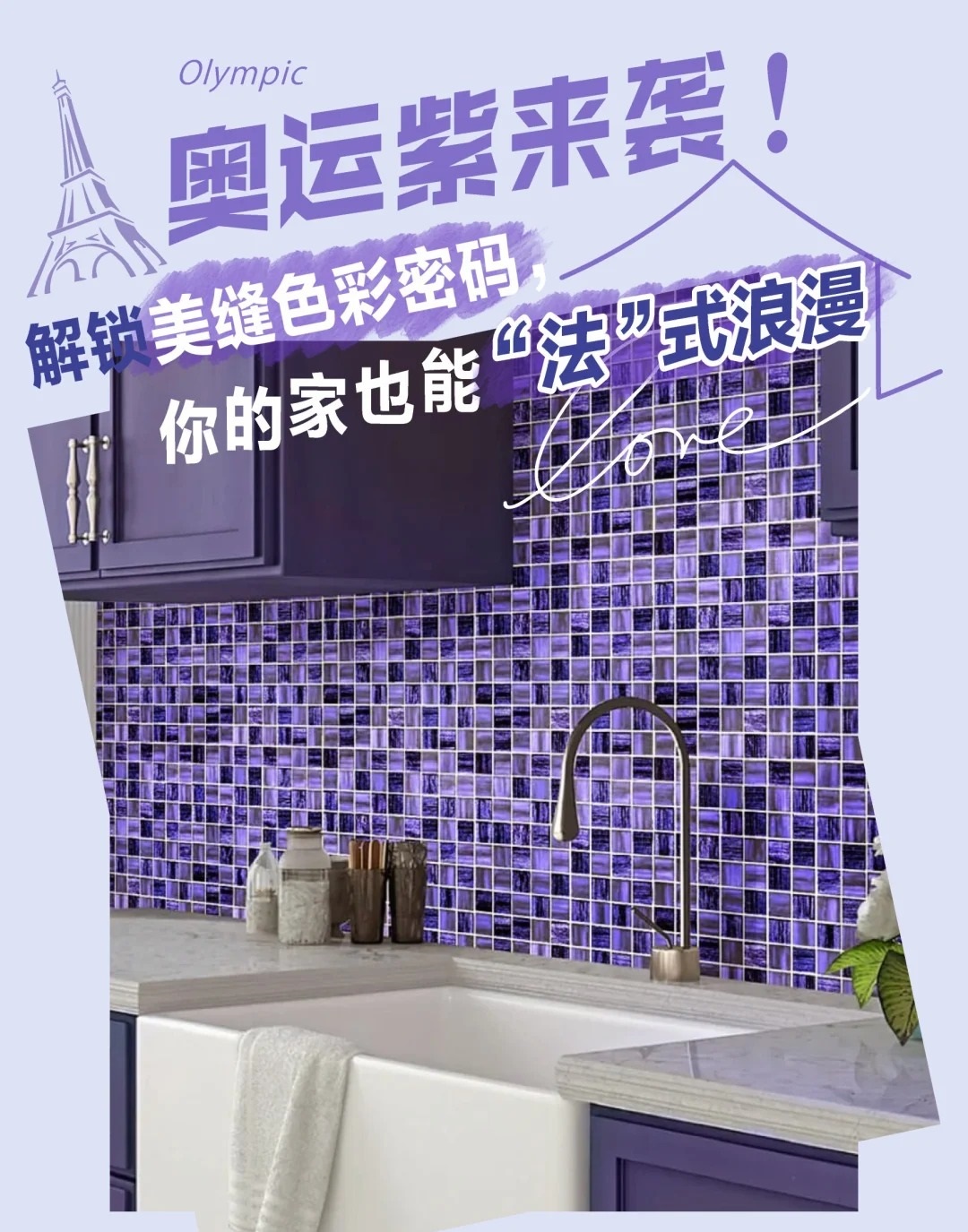 渐变紫色美缝,如同一支细腻的画笔,为紫色地中海风格的家居空间描绘出一幅梦幻且深邃的画面。紫色美缝与复古瓷砖的光泽交织,仿佛置身于紫罗兰盛开的地中海海岸,神秘而浪漫。